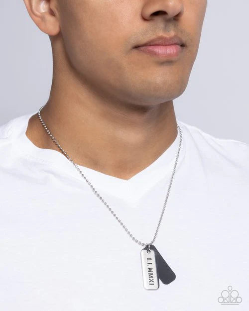 Gliding along a silver ball chain, a black leather pendant is layered behind a Roman Numeral-stamped silver pendant for a unique urban look. Features an adjustable clasp closure.